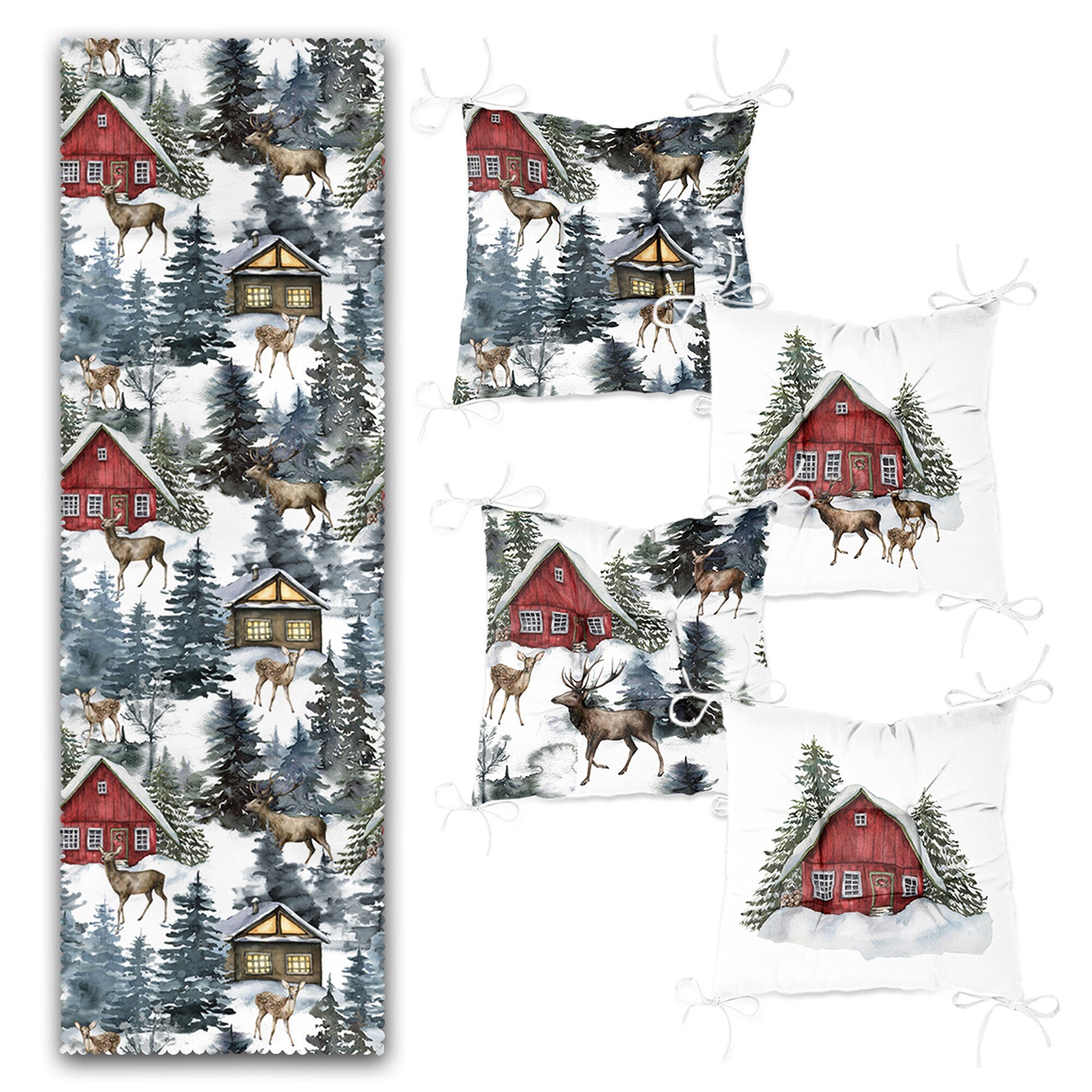 Set Of 4 Puffy Chair Pads And 1 Table Runnerwinter Trend Snow Etsy De